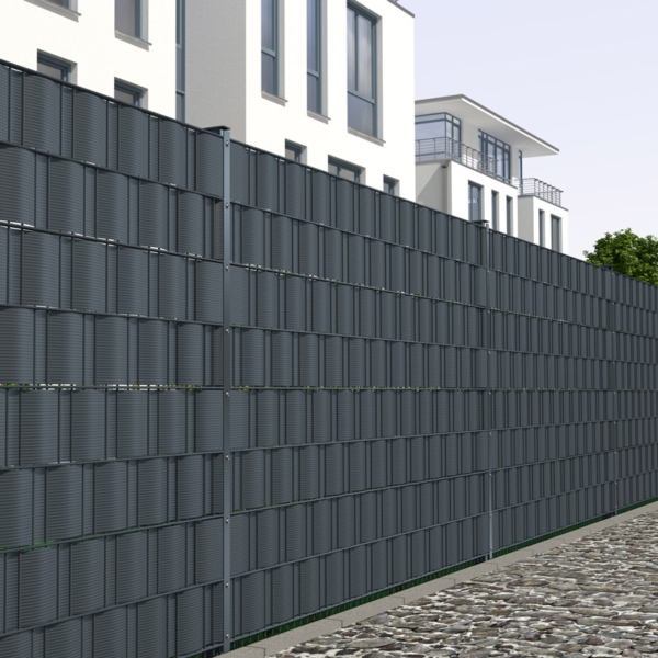 Sie benötigen pro 20cm Höhe einer Doppelstabmatte einen Sichtschutzstreifen.
