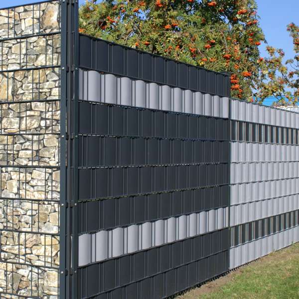 Sie benötigen pro 20cm Höhe einer Doppelstabmatte einen Sichtschutzstreifen.